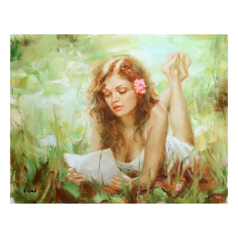 "Love Letter" is a limited edition giclee on canvas by Vidan, nephew and protege of Pino (1939-2010). Numbered and hand signed by the artist. Includes Certificate of Authenticity. Measures approx. 26" x 20" (image).