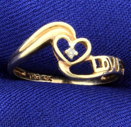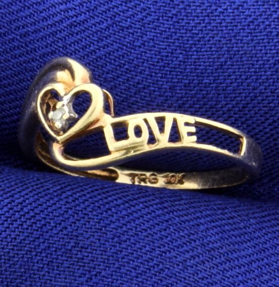 In 10K yellow gold, it contains one .01ct round diamond. Size 7 1/4 1.3g