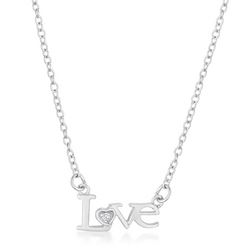 Fashioned in delicate script and a solitary stone the Love Script Necklace professes beautiful narrative in its simple design. Our genuine rhodium finish is achieved using an electroplating process that coats the item with heavy layers of rhodium a close cousin to platinum which gives our jewelry a platinum luster.Base Metal: Lead Free Alloy (Brass)Style: , Setting Type: PaveMaterials: , Stone Cut: RoundCarat Weight: 0.1 (ct)Color: , Plating Color: Silvertone Matte FinishChain Clasp: 6.00ecklace Clasp: Lobsterecklace Size: 16 inch + 2 inch extenderecklace Chain Type: LinkStone Size: 1 (mm) x 1 (mm)Type: Necklace