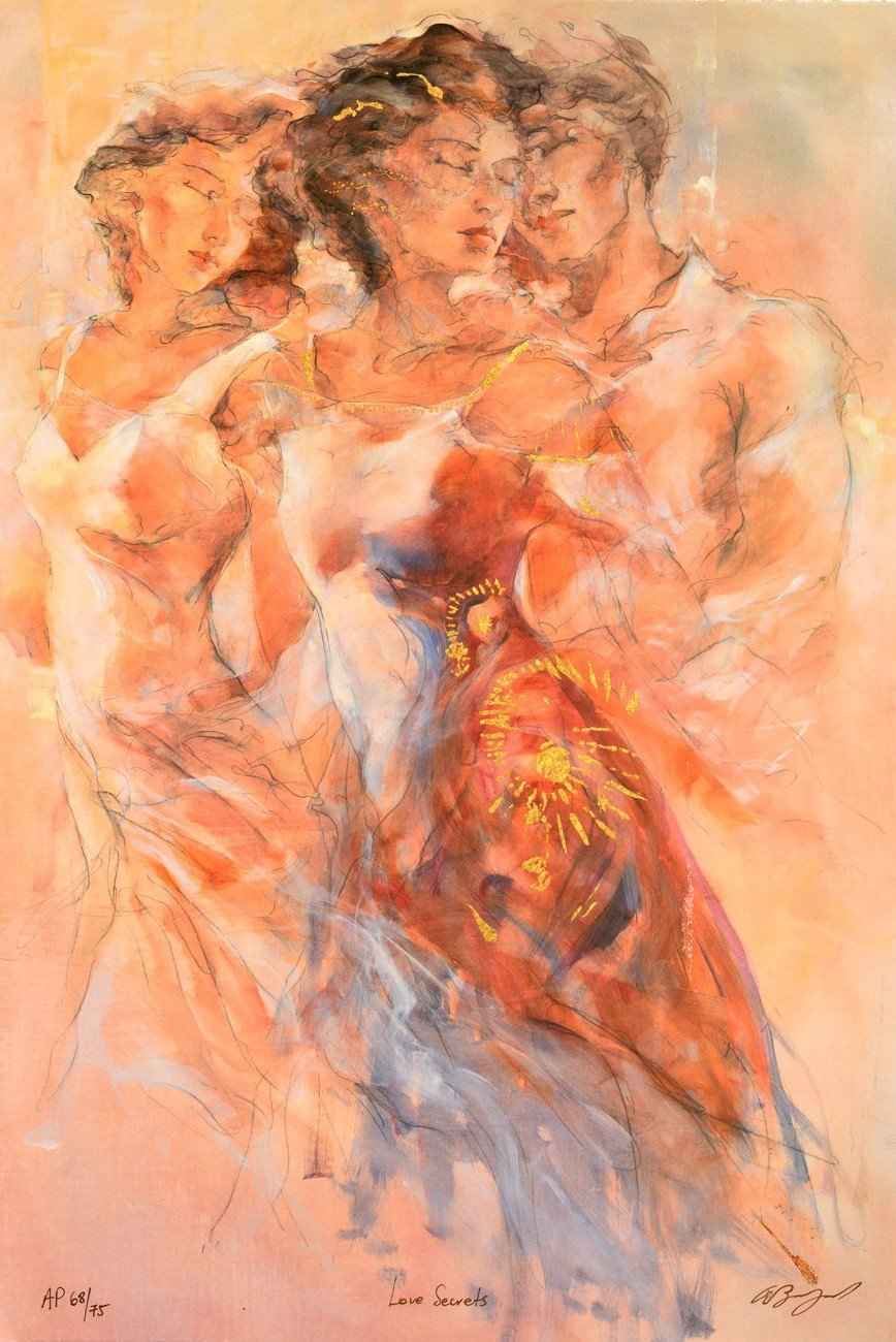 Love Secrets AP by Benfield, Gary. Limited Hand Signed Serigraph on Canvas. AP. Dimensions: 27.5 x 18.5. Excellent Condition.