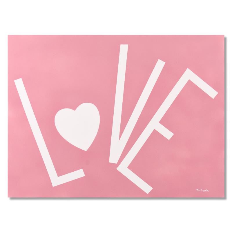 "Love" is an original acrylic painting on canvas by Tom Pergola, hand signed by the artist. This piece comes gallery wrapped. Includes Letter of Authenticity. Measures approx. 40" x 30" (image).