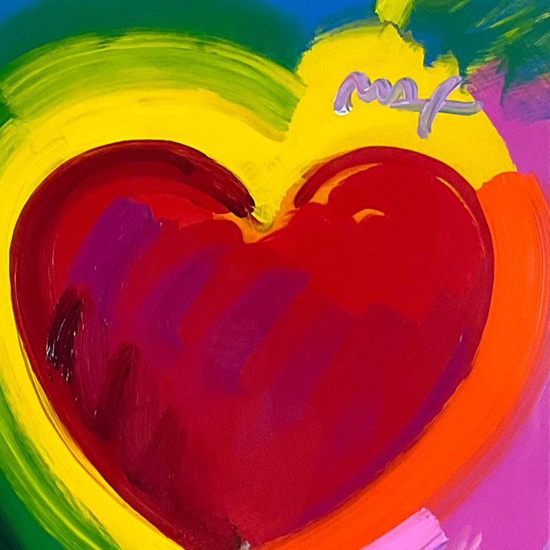 Love by Peter Max. Please see photos and description for all available information. "Love " is a one-of-a-kind acrylic mixed media on paper, hand signed by Peter Max. This piece comes custom framed. On the reverse side of this piece there is a registration number (250370) from Peter Max Studios certifying authenticity. Measures approx. 34" x 46" (frame), 23" x 35" (image).