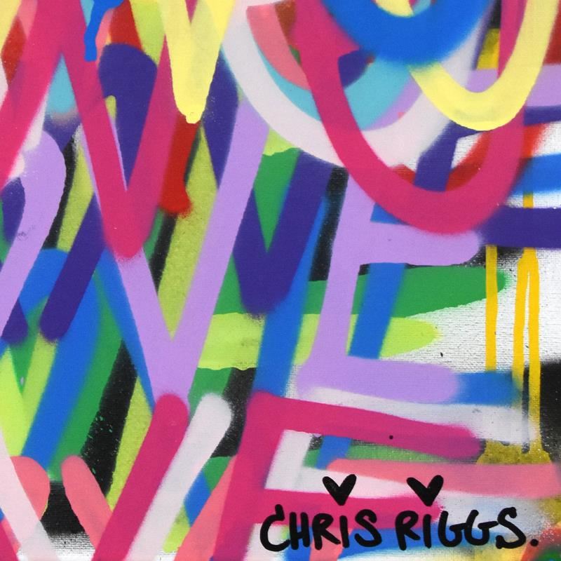 "Love" is an original spray paint painting on canvas by Chris Riggs, hand signed by the artist. This piece comes framed. Includes Letter of Authenticity. Measures approx. 17" x 21" (frame), 16" x 20" (image).