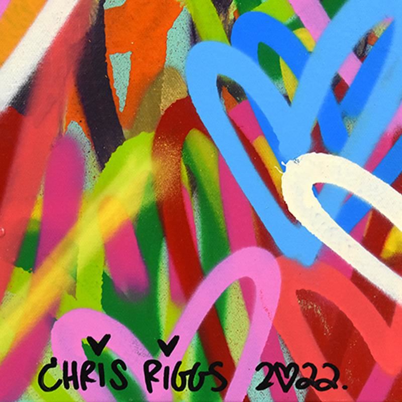 "Love" is an original spray paint painting on canvas by Chris Riggs, hand signed by the artist. This piece comes gallery wrapped. Includes Letter of Authenticity. Measures approx. 36" x 36" (image).