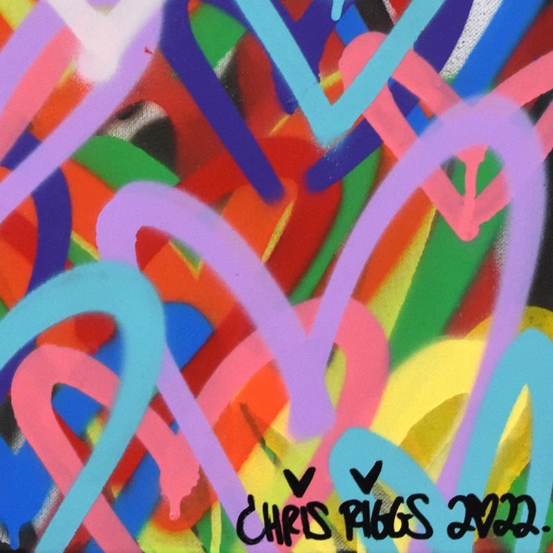 Love is an original spray paint painting on canvas by Chris Riggs, hand signed by the artist. This piece comes framed. Includes Letter of Authenticity. Measures approx. 17 x 21 (frame), 16 x 20 (image).