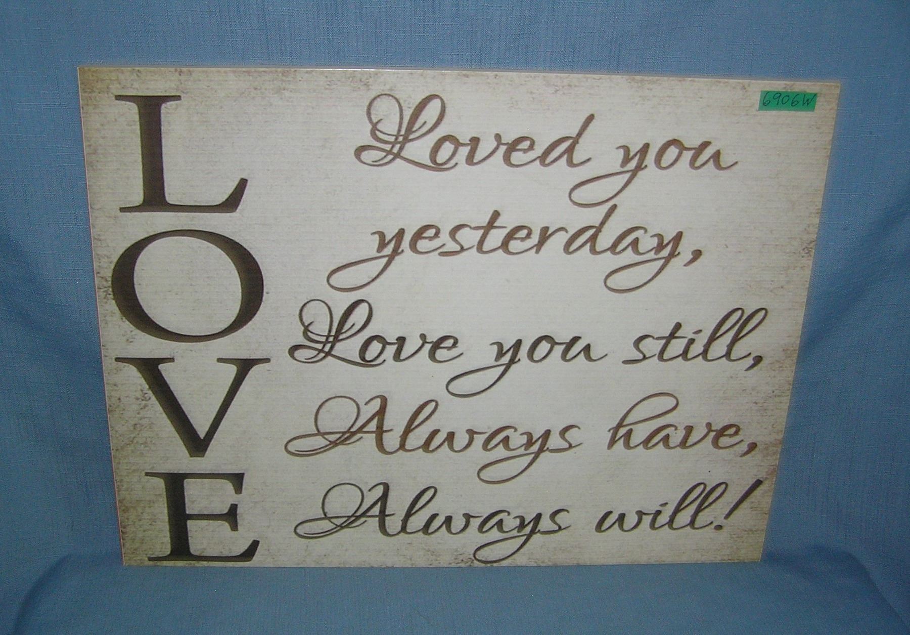 Love you yesterday Love you still Always have Always will! retro style advertising sign printed on PVC hardboard these signs are auctioned for their decorative and display purposes 12 inches by 16 inches est. value $50.00-$60.00
