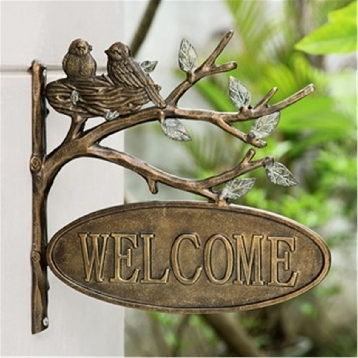 Lovebirds Wall Mounted Welcome Sign - 12"H 12.5"W 1.5"D - Aluminum