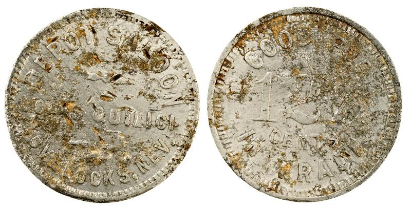 Obverse: Depot Saloon / Louis Quilici / Lovelocks, Nev.; reverse: Good For / 12 1/2 / cents / In Trade.