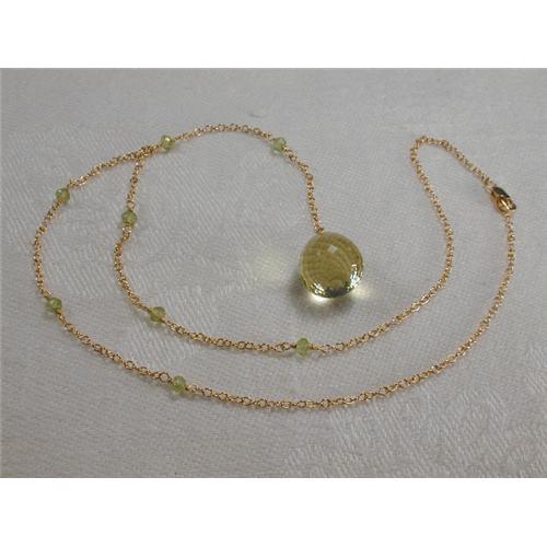 <tr><td>Title:Lovely 14K YG Gold Peridot Drop 20" Necklace</td></tr>