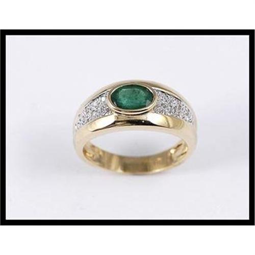 <tr><td>Title:Lovely 18K Yellow Gold Emerald and Diamond Ring</td></tr>
