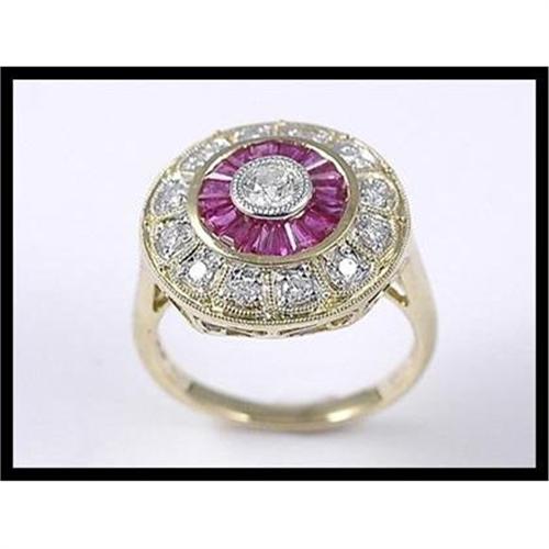 <tr><td>Title:Lovely 18K Yellow Gold Ruby and Diamond Ring</td></tr>