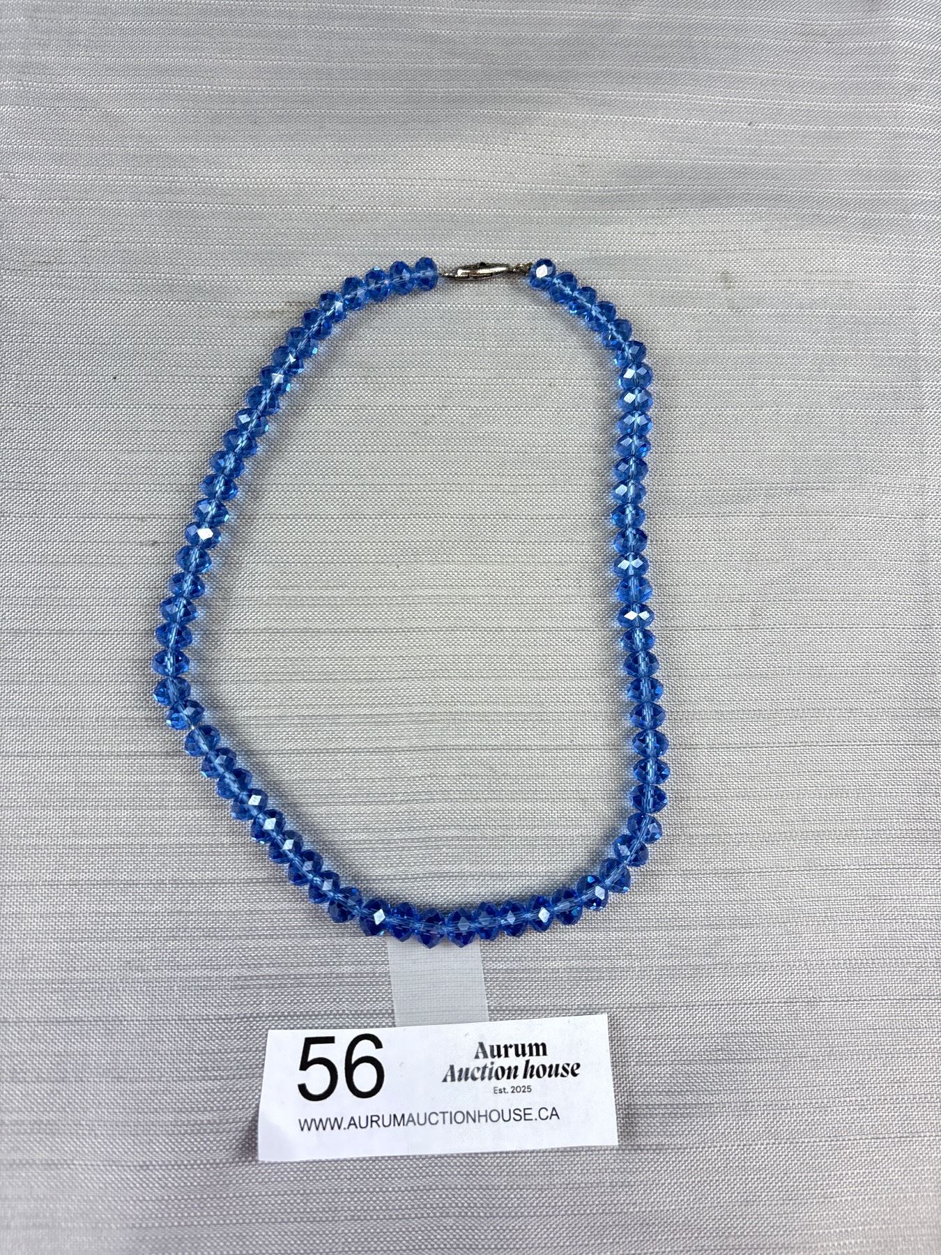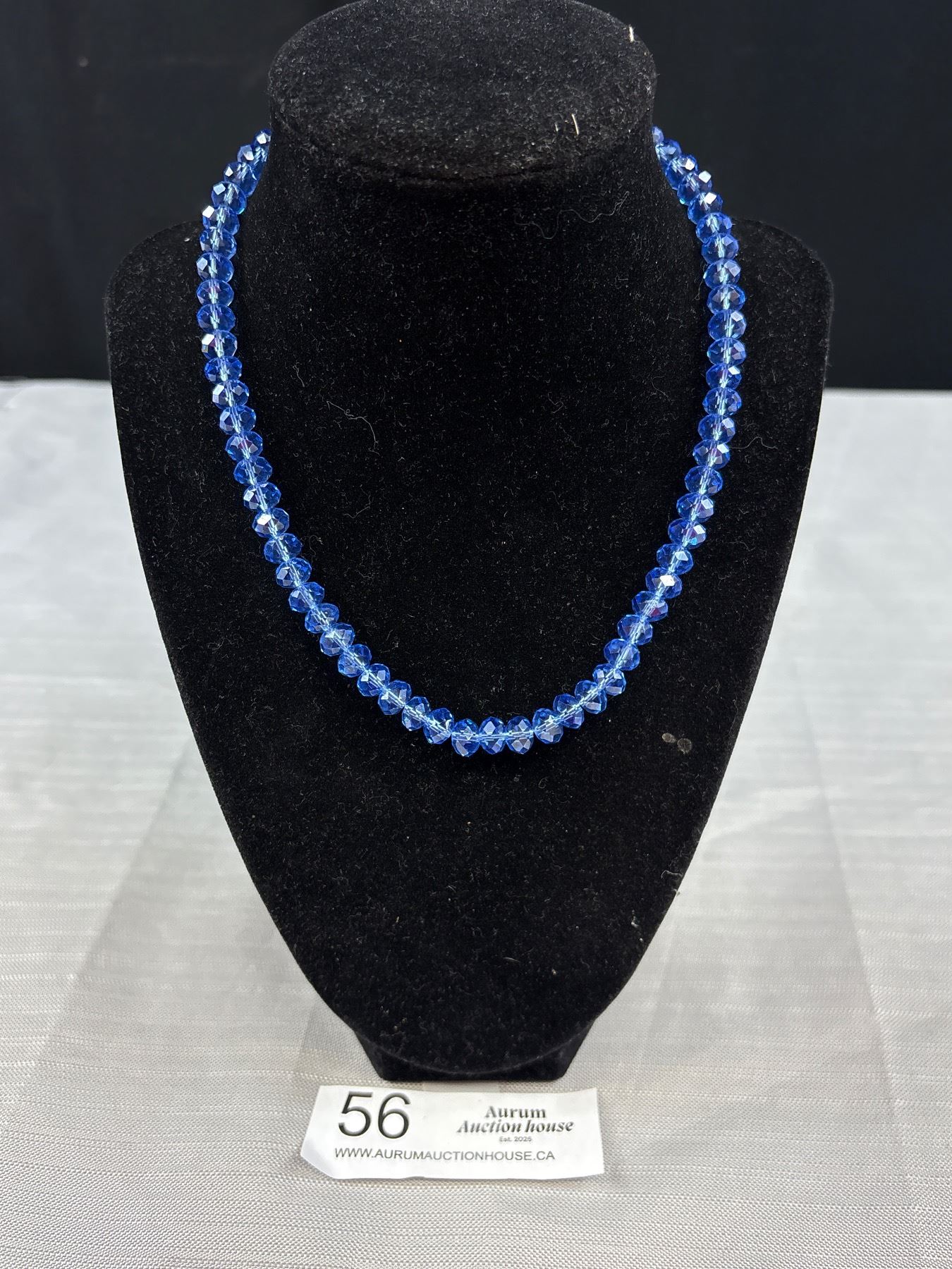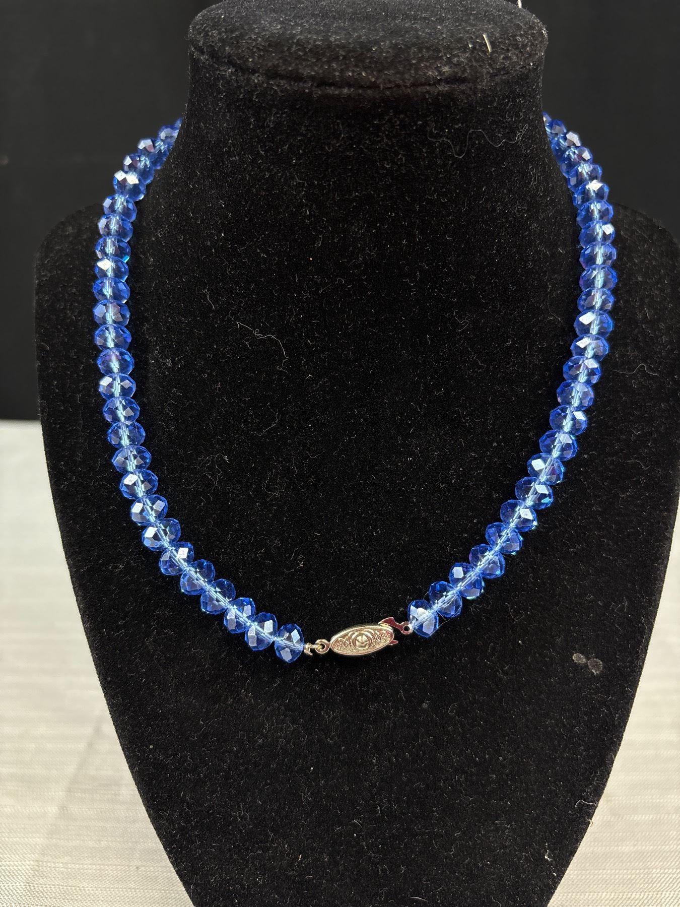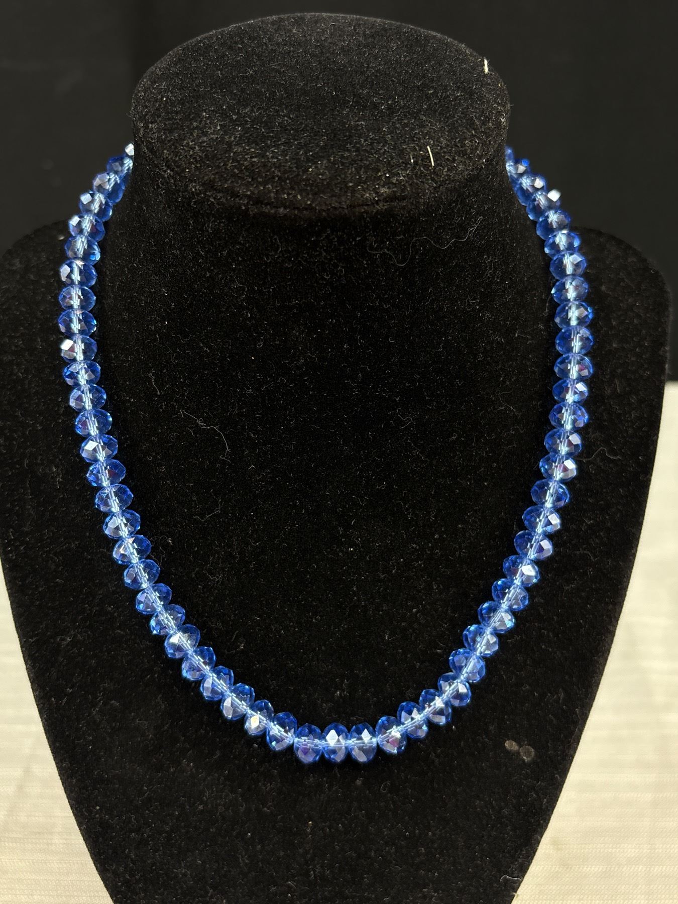 Lovely Blue Faceted Glass Beaded Necklace with Vintage Style Silver Tone Clasp