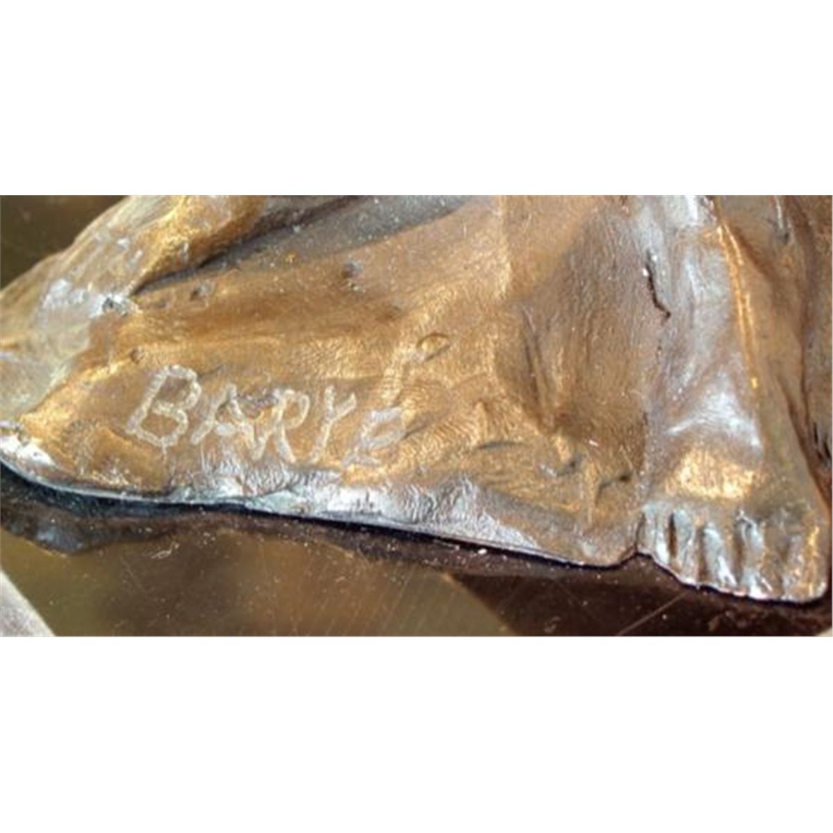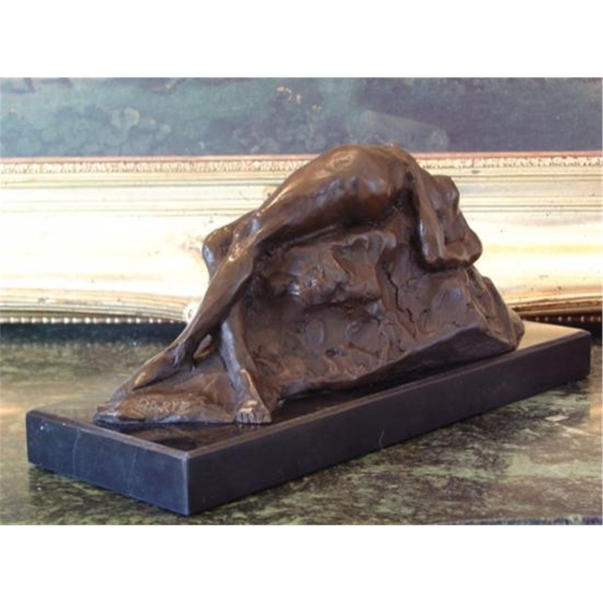 Reclining Goddess Bronze Sculpture, After Barye 13"H x 7"W x 5"D 14 lbs. This bronze sculpture was produced using the "Lost Wax" casting method. The"Lost Wax" Cast method is the most precise metal casting technique in existence, ensuring exquisite detail of the original host model which is usually sculpted in clay or wax. This "Lost Wax" casting method is an extremely labor intensive and expensive process, but the end results produce a Heirloom Quality Masterpiece!