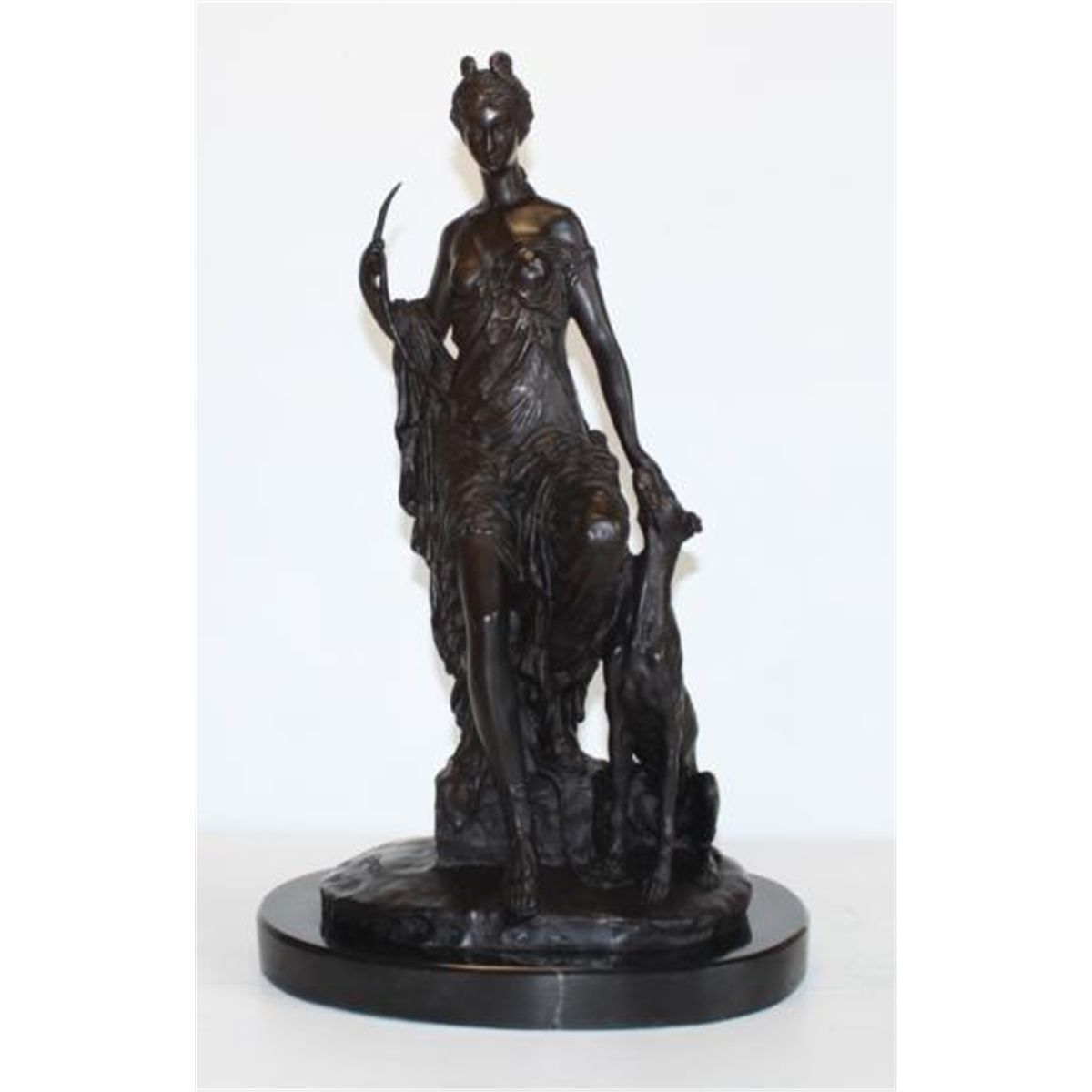 Victorian Royal Lady and Greyhound, After F. Priess, Bronze Sculpture, 18"H x 8"D x 11"W 24 lbs This bronze sculpture was produced using the "Lost Wax" casting method. The"Lost Wax" Cast method is the most precise metal casting technique in existence, ensuring exquisite detail of the original host model which is usually sculpted in clay or wax. This "Lost Wax" casting method is an extremely labor intensive and expensive process, but the end results produce a Heirloom Quality Masterpiece!