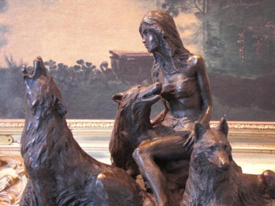 Woman and Wolves, Bronze Sculpture, After Rubin, 11"H x 14"W x 8"D 24lbs This bronze sculpture was produced using the "Lost Wax" casting method. The"Lost Wax" Cast method is the most precise metal casting technique in existence, ensuring exquisite detail of the original host model which is usually sculpted in clay or wax. This "Lost Wax" casting method is an extremely labor intensive and expensive process, but the end results produce a Heirloom Quality Masterpiece!