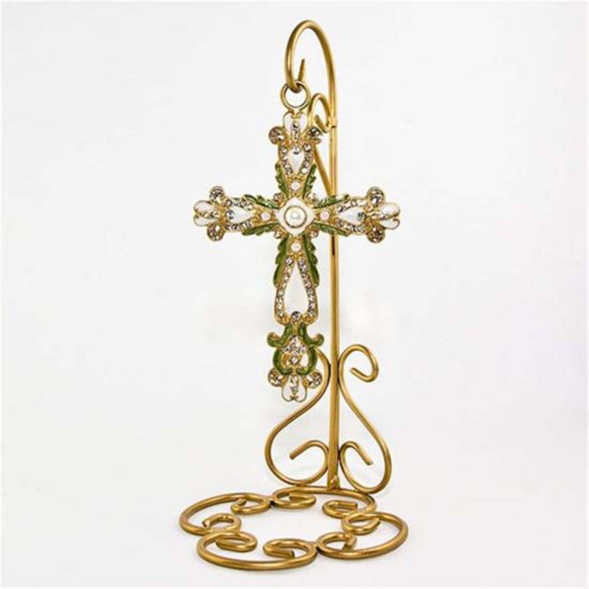 Lovely Cloisonne Table Cross with Inlaid Crystals, Dimensions: 7.5in (H) X 3.5in (W) X 3.25in (L), Material: Pewter