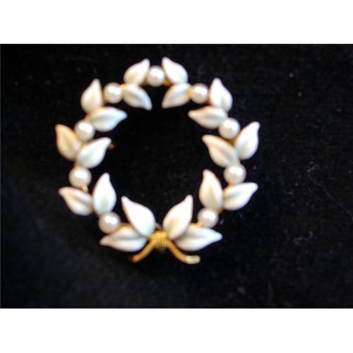 <tr><td>Title:Lovely Edwardian Laurel Leaf Gold Pearl Enamel</td></tr>