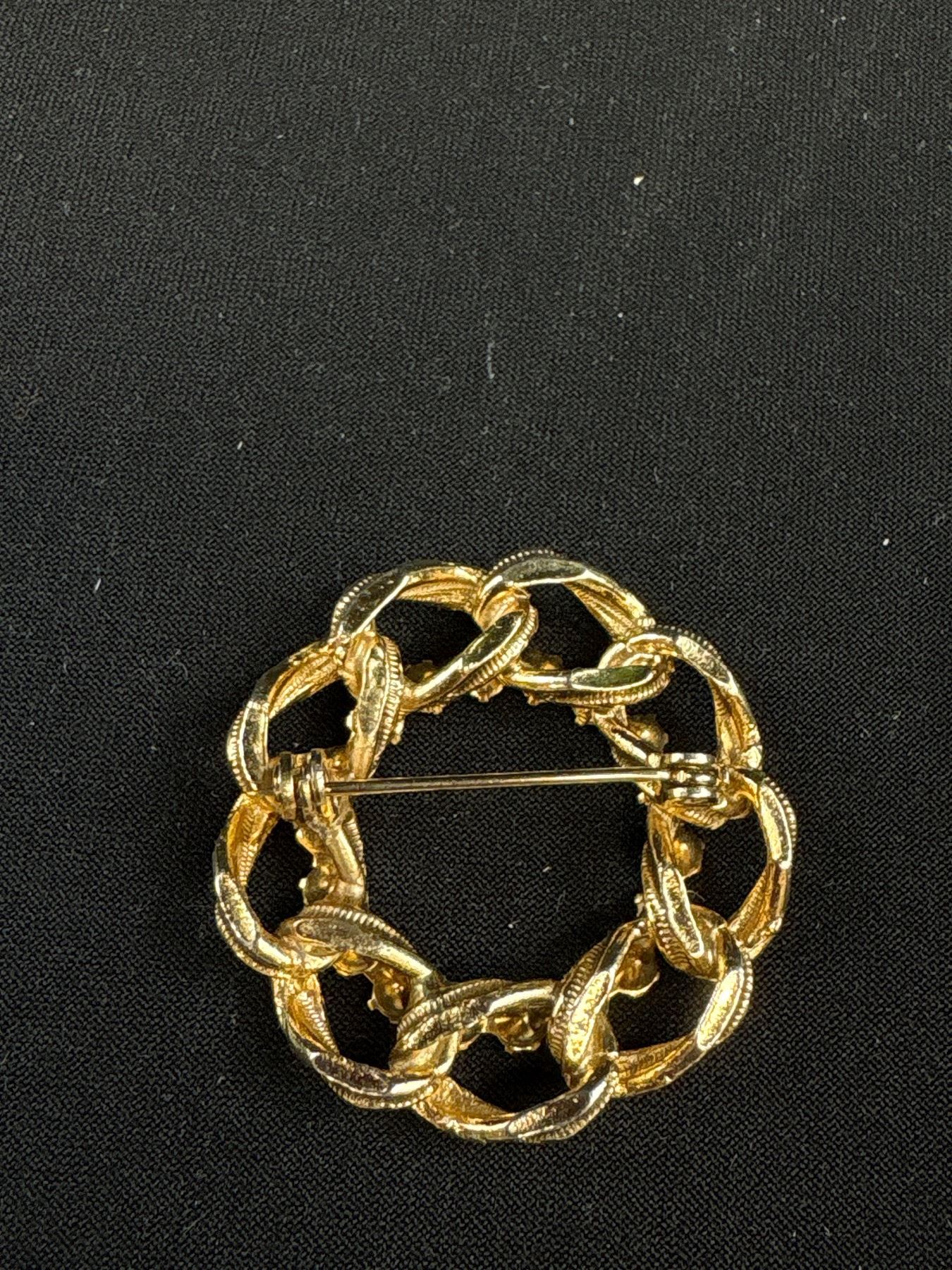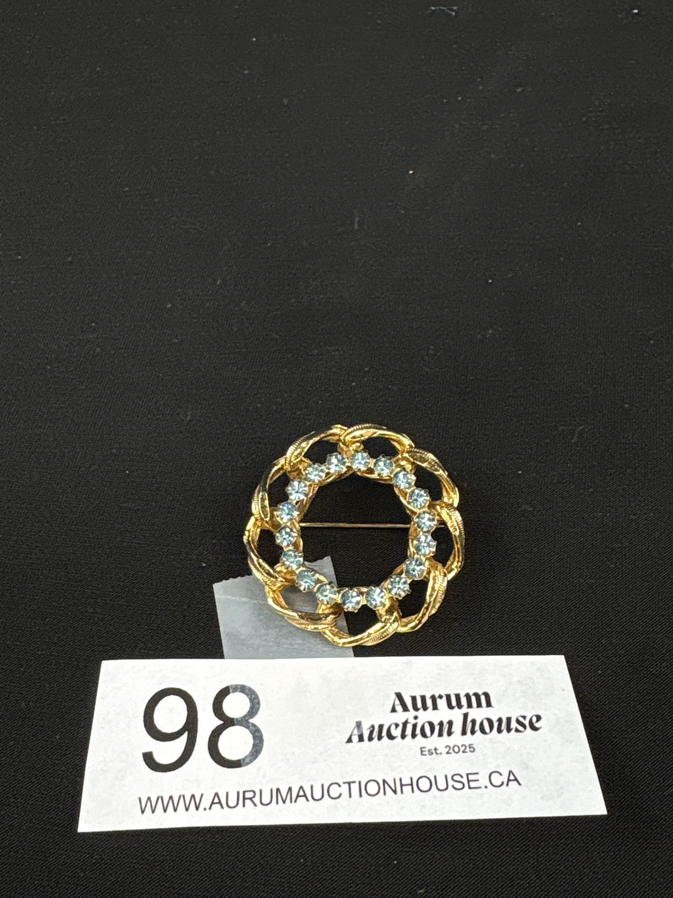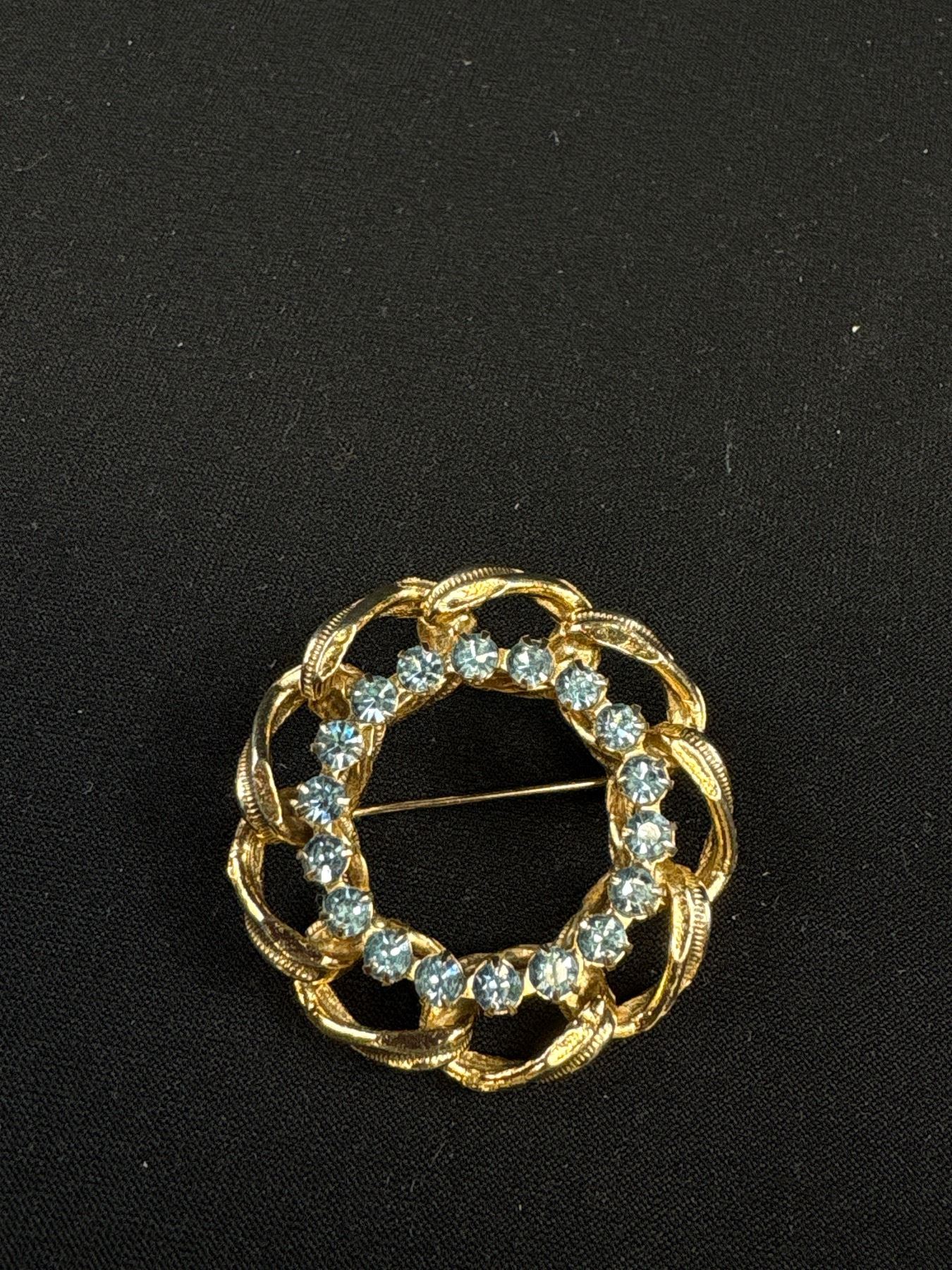 Lovely Goldtone Brooch w/ Circle of Light Blue Stones