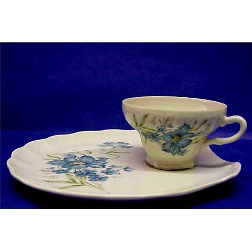 Lovely vintage hostess set cup and a large saucer-tray, decorated with beautiful blue flowers against milky white china, Excellent condition, US Buyer please pay 8.00 for insured shipping, Thank You for looking.