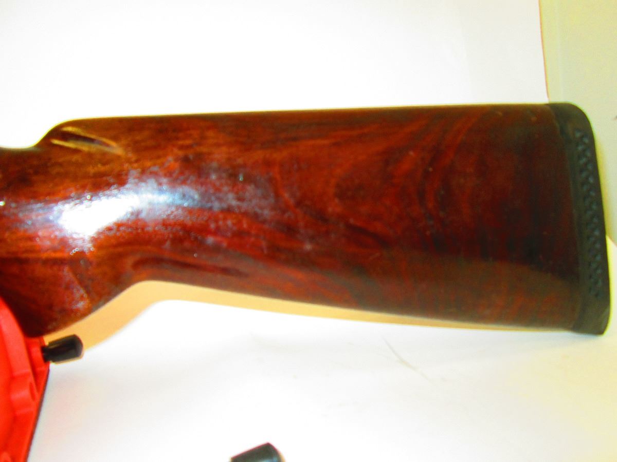 12 Ga. 30" and 22" bbls. High gloss re-bluing on the shot barrel. Receiver looks to be original bluing and is rubbed down. Tru glo front sight. Some rust freckling on the receiver and shot barrel. Comes with smooth slug barrel with rifle sights. Excellent wood.