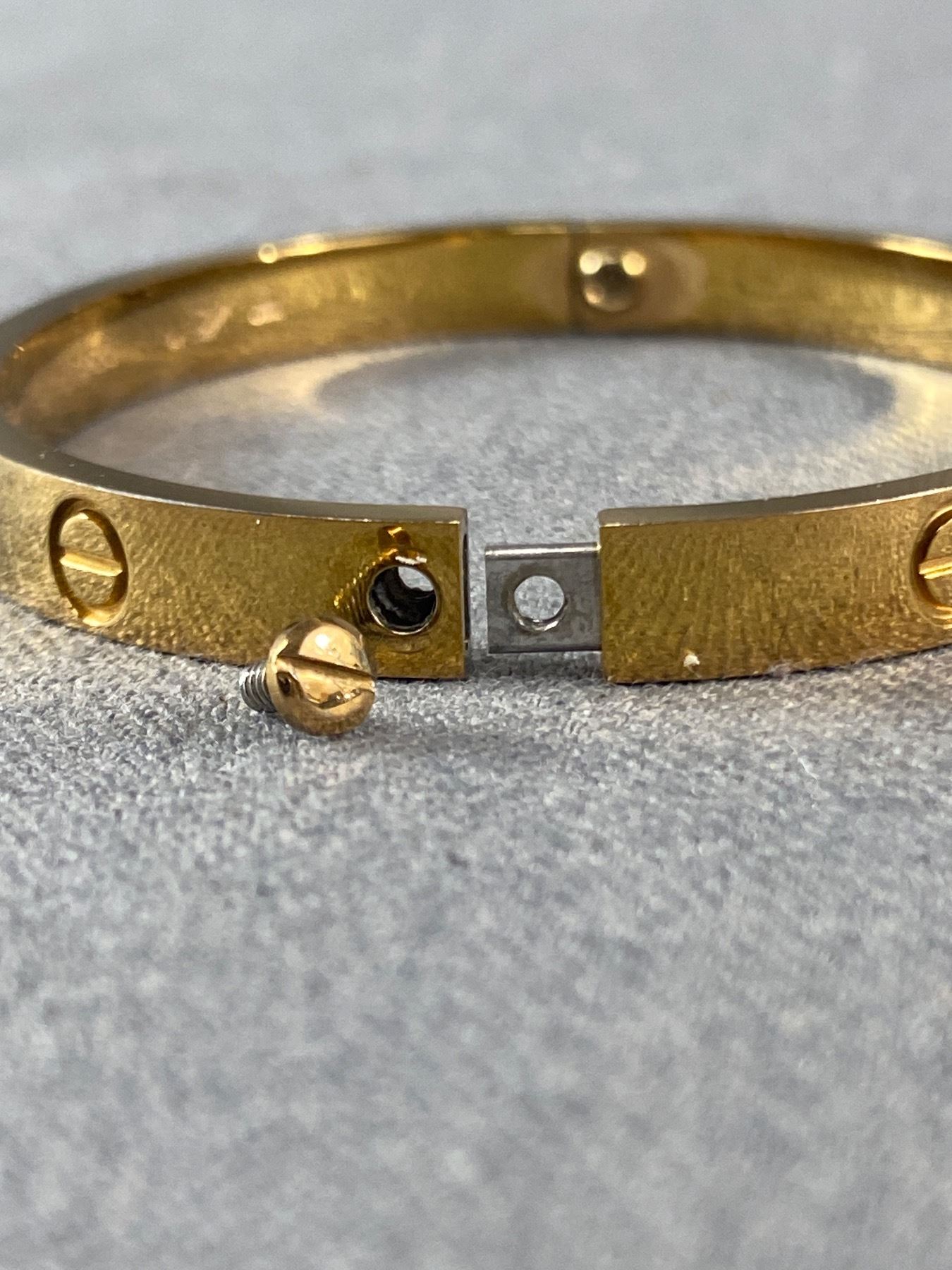 Lovely Oval Shaped Replica Cartier Bangle. Marked 750 Cartier © 0L4783 + Hallmarks. In Good Condition