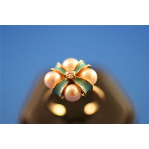 Lovely Pearl, diamond and Enamel RIng in 14K #836281