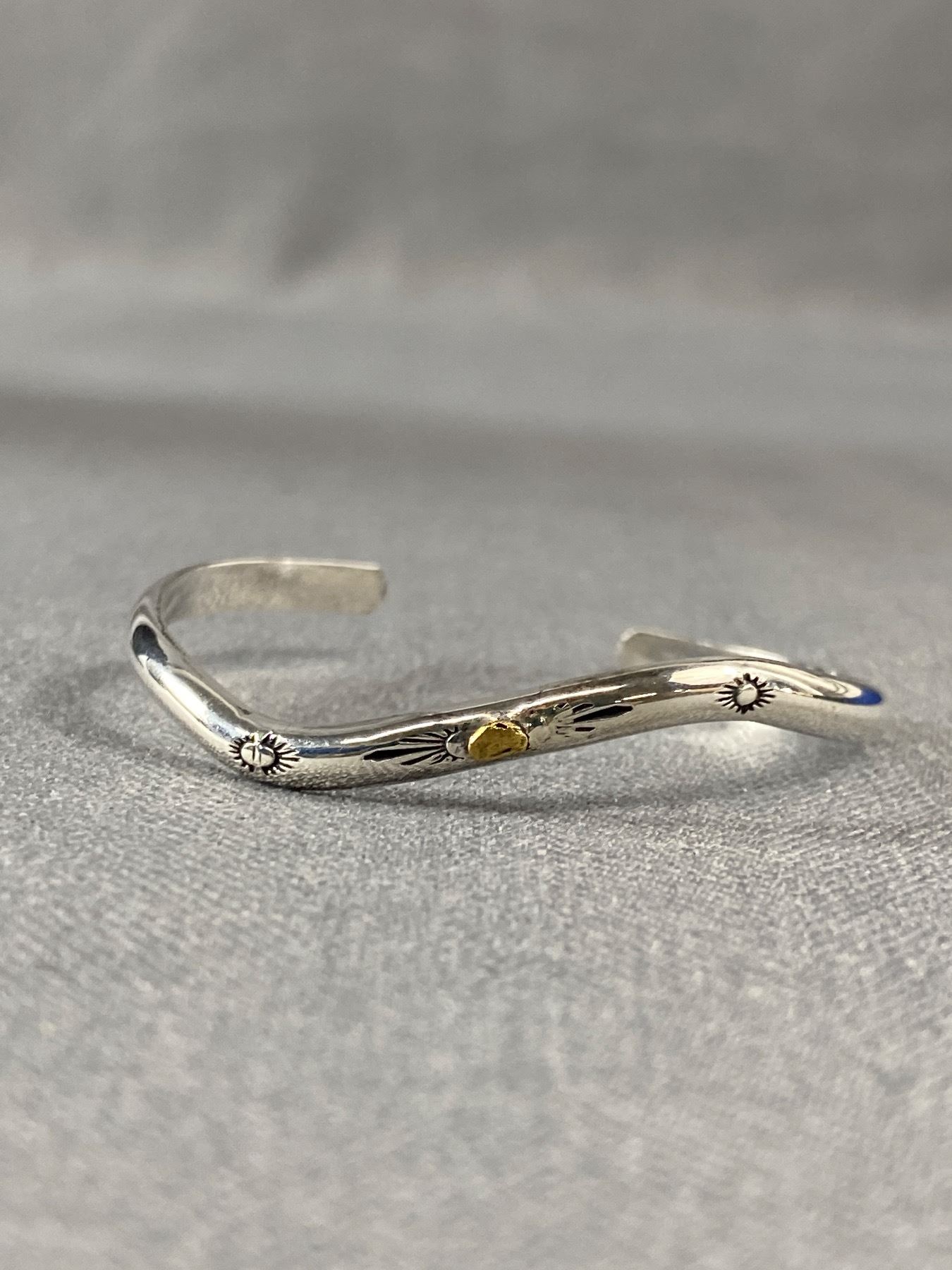 Lovely Sterling Silver with Gold Nugget Stone in Center. Good Condition Ring& cuff Bangle