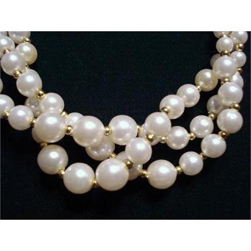 BEAUTIFUL TRIPLE STRAND PEARLS, THESE ARE COSTUME, FASHION pearls each separated with gold color beads and in EXCELLENT CONDITION - Free of damage - Measures about 17 1/2" long - US Buyer to pay 6.00 for shipping plus insurance.THANKS.