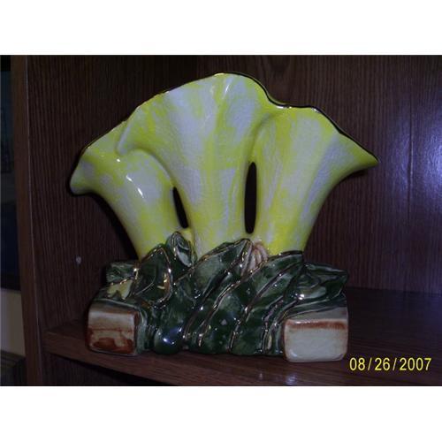 <tr><td>Title:Lovely Yellow Triple Lily Vase by McCoy</td></tr>