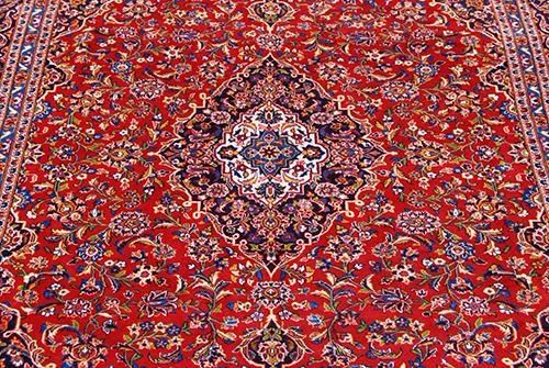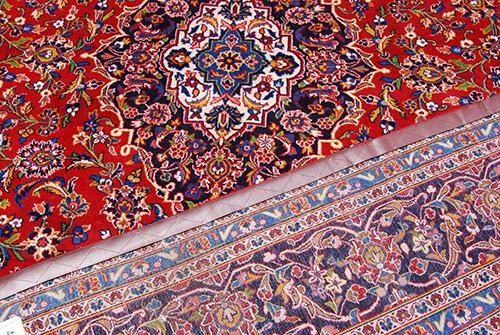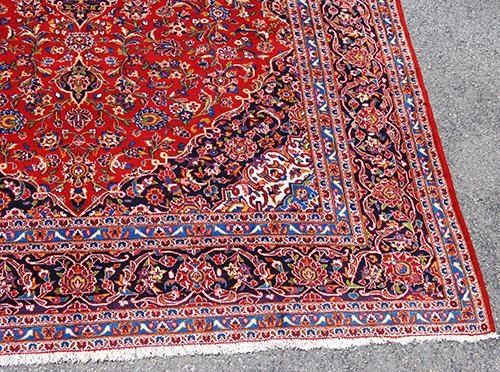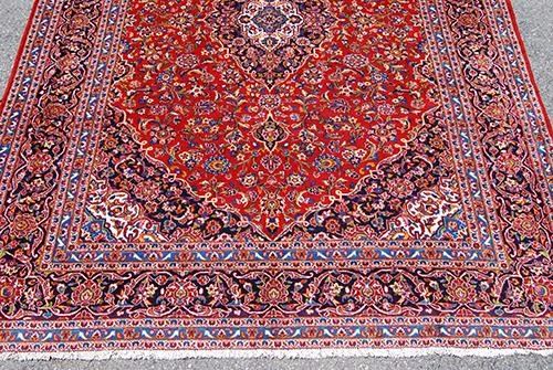 Unique design very attractive fine Kashan design Rug. 100% natural, vegetable dye, hand woven, worsted wool pile on cotton foundation. This is a dazzling and lovely Rug with its charming floral Shah-Abbasi design on a soft red background. This gorgeous Rug has a lustrous appearance due to the superior worsted wool pile which also gives it a certain presence that is rare to come across in the market place. Size: 13 feet 4 inches X 9 feet 6 inches. Country of origin: Iran.