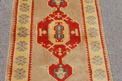 Lovely nice colors handmade Turkish Konya Rug. Made of all natural, vegetable dye, hand woven, worsted wool pile on cotton foundation. Konya Rugs are one of the largest and most important groups of the central anatolian Rug group. The Turkman influence in older Konya Rugs is very strong. In fact the older the Rug generally the stronger the use of Turkman iconography. Hand woven in Turkey. Size: 2 feet 5 inches X 4 feet 6 inches.