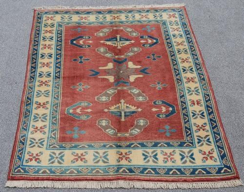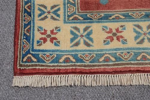Lovely nice colors handmade Turkish Konya Rug. Made of all natural, vegetable dye, hand woven, and worsted wool piles on cotton foundation. Konya Rugs are one of the largest and most important groups of the central anatolian Rug group. The Turkman influence in older Konya Rugs is very strong. The older Rug, the stronger the use of Turkman iconography. This item is hand woven in Turkey. Size: 5 feet 4 inches X 7 feet.