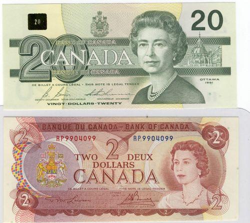 Lovely pair of "RADAR" notes. 1974 $2 RP9904099 and 1991 $20 ESP9049409. Both notes are Gem's.