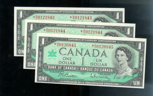 Lovely run of 3 consecutive numbered notes. BC-45bA $1 1967 *N/O0126843-845 . All Gems.