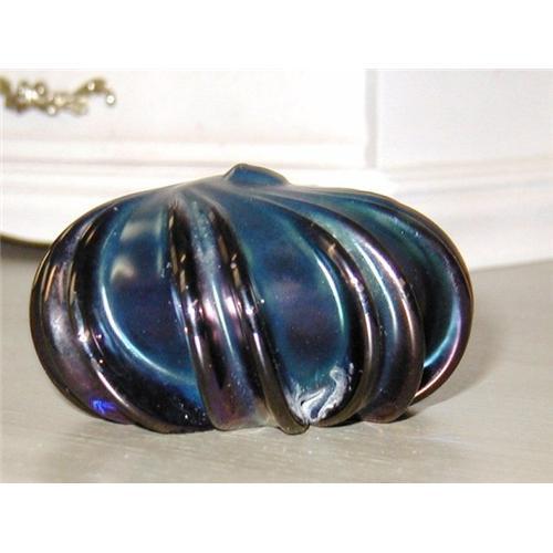 Lovely signed glass paper weight in purple swirls with green shine. It is heavy. Buyer pays shipping and handling costs.
