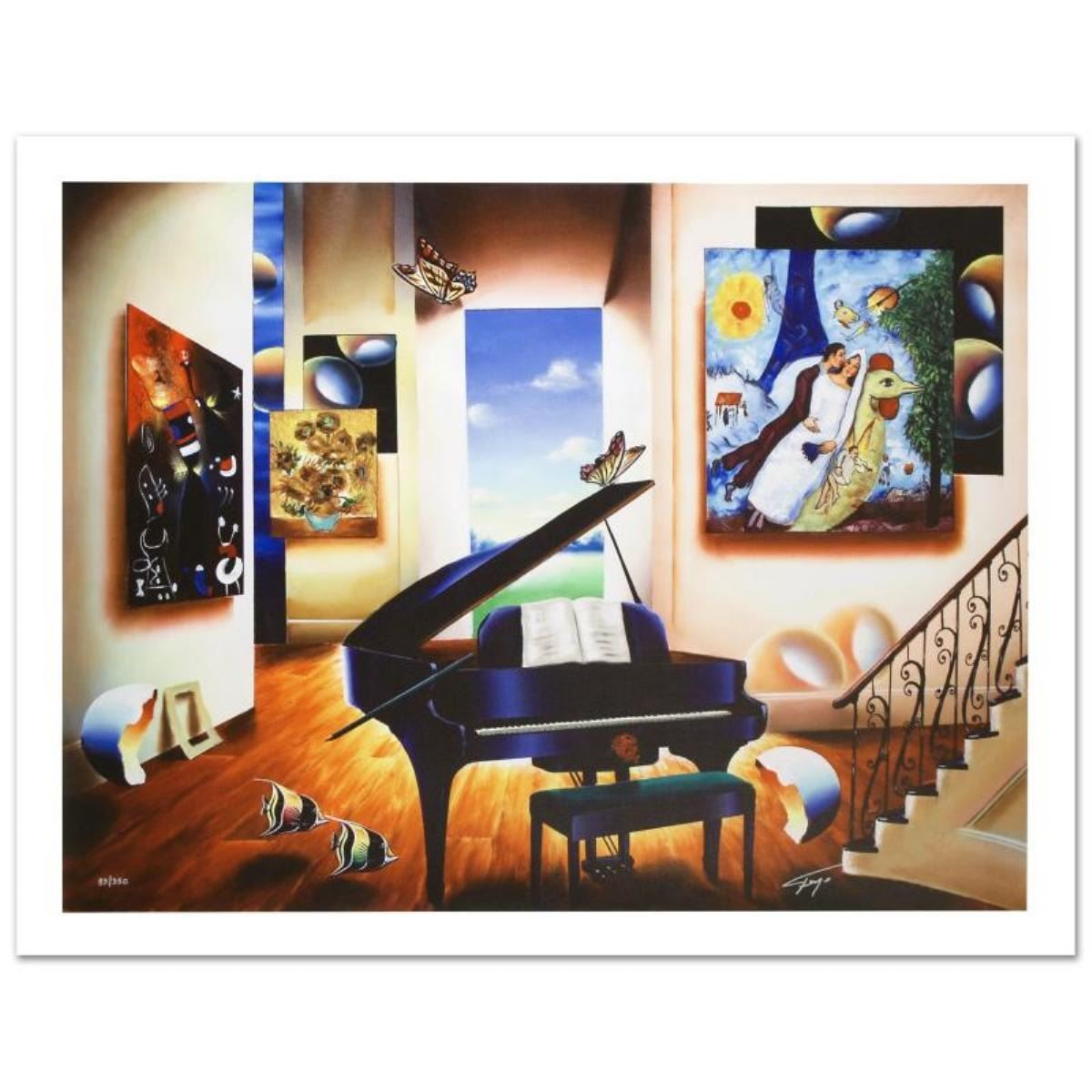 "Lover's Song" is a limited edition giclee on canvas, numbered and hand signed by Ferjo. Includes Certificate of Authenticity! Measures approx. 40" x 30" (image).
