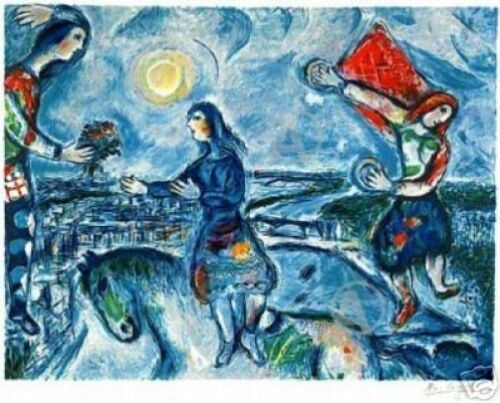 Lovers over Paris by Chagall, Marc. Limited Facsimile Signed Lithograph. Dimensions: 24.5 x 35. Excellent Condition.