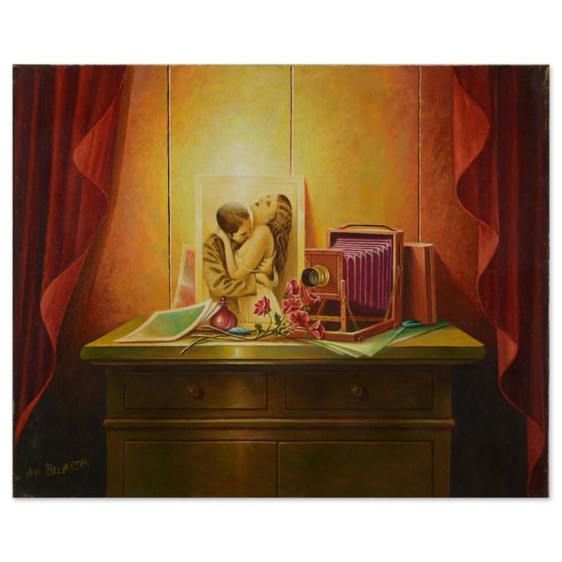 Loves Embrace by Belaish Original. Please see photos and description for all available information. "Loves Embrace" is an original acrylic painting on stretched canvas by Avi Belaish, hand signed by the artist. Includes Letter of Authenticity. Measures approx. 22" x 18" (image). There is minor wear on the corners and edges that may be concealed when framed.