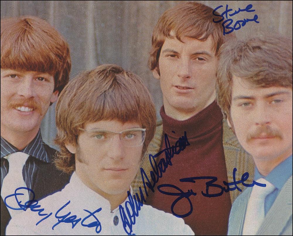 Color glossy 10 x 8 group photo, signed in blue felt tip by John Sebastian, Joe Butler, Steve Boone, and Jerry Yester. In fine condition, with image a bit grainy.