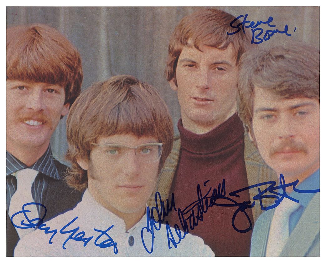 Color glossy 10 x 8 group photo, signed in blue felt tip by John Sebastian, Steve Boone, Joe Butler, and Jerry Yester. In fine condition.