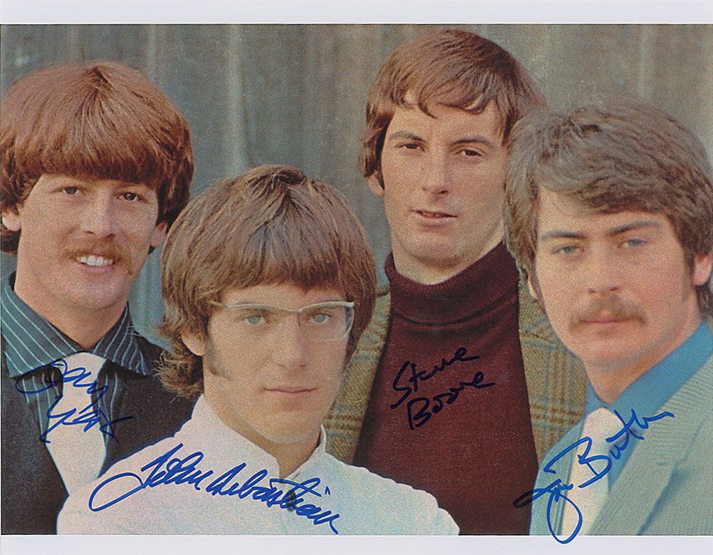 Color glossy 14 x 11 group photo, signed in blue felt tip by John Sebastian, Joe Butler, Steve Boone, and Jerry Yester. In very fine condition.