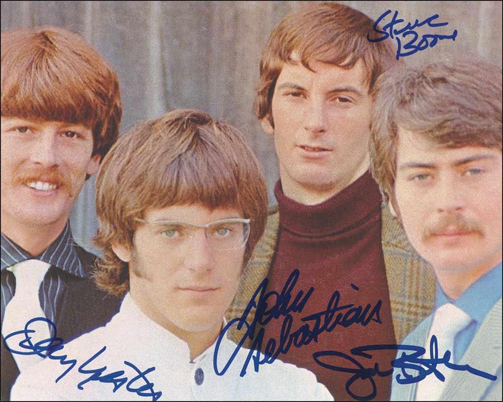 Color glossy 10 x 8 photo, signed in blue felt tip by John Sebastian, Steve Boone, Joe Butler, and Jerry Yester. In very fine condition.