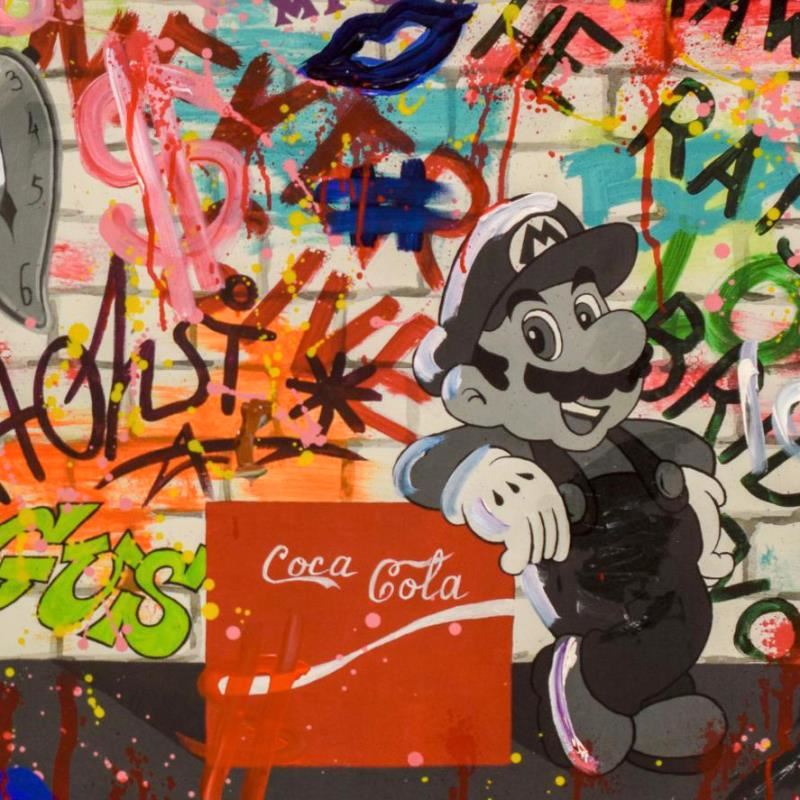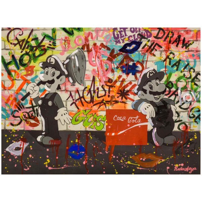 "Loving Coca Cola" is an original Mixed Media on Canvas by Nastya Rovenskaya. The piece is hand signed and comes with a Certificate of Authenticity. Measures approximately 40" x 30".