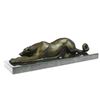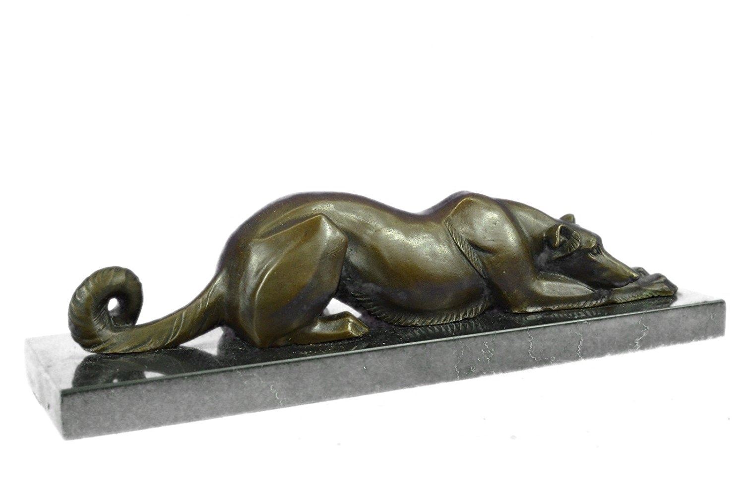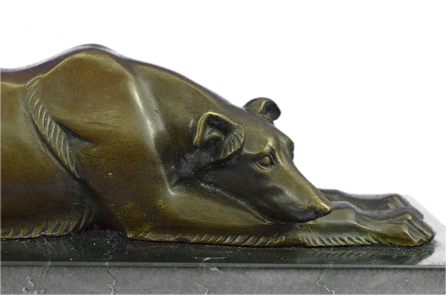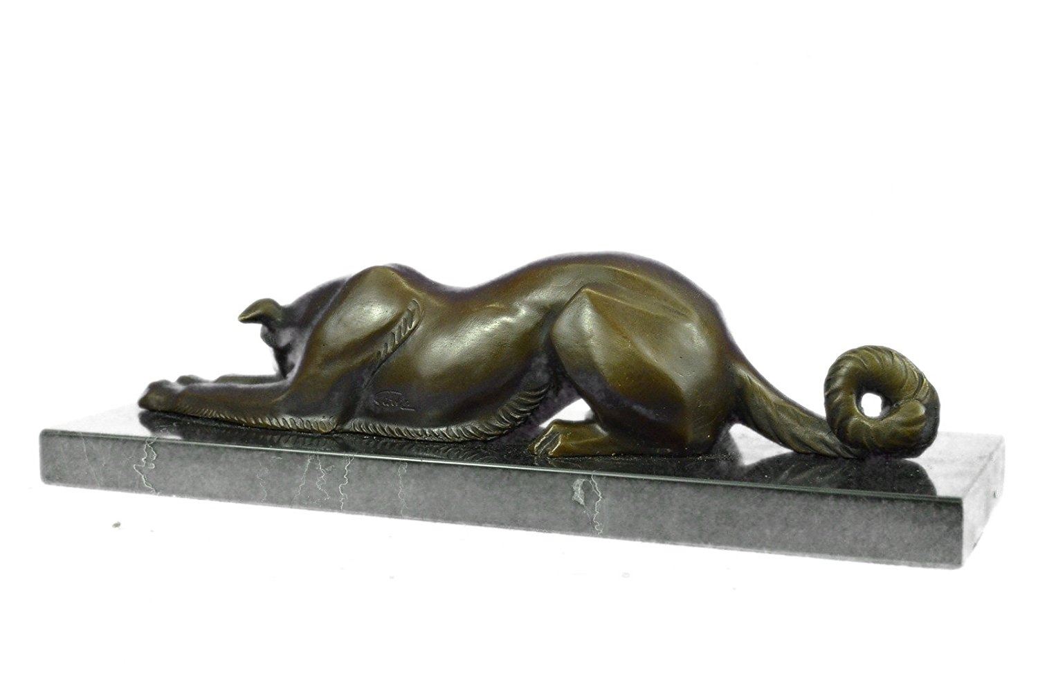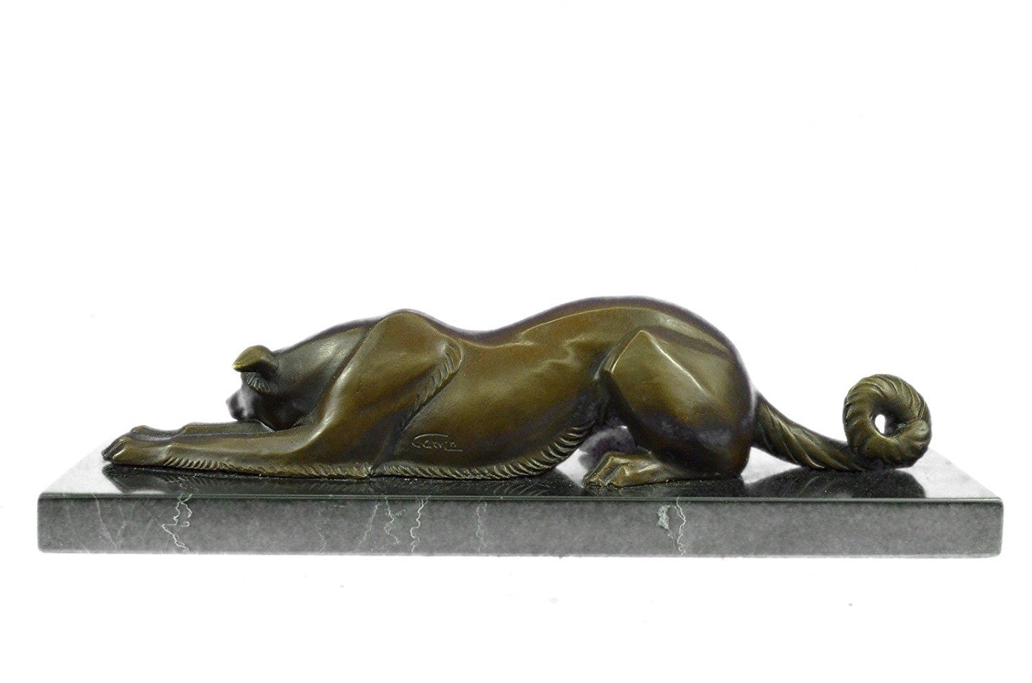 This Patient And Loving Greyhound Dog Rests On The Ground. His Long, Lean Body Stretches Out And His Head Lays On His Front Leg. His Thick Tail Curls Up. The Strong And Skillful Animal Appears Calm And Pensive In This Bronze Sculpture. The Peaceful Sculpture Of Man'S Best Friend Was Crafted Using The Lost Wax Method. It Rest On A Black Marble Base. Bronze Dimensions with Marble Base: Height 4 X Width 12 inches. Weight: 7 LBS. Inventory: 26K3413562