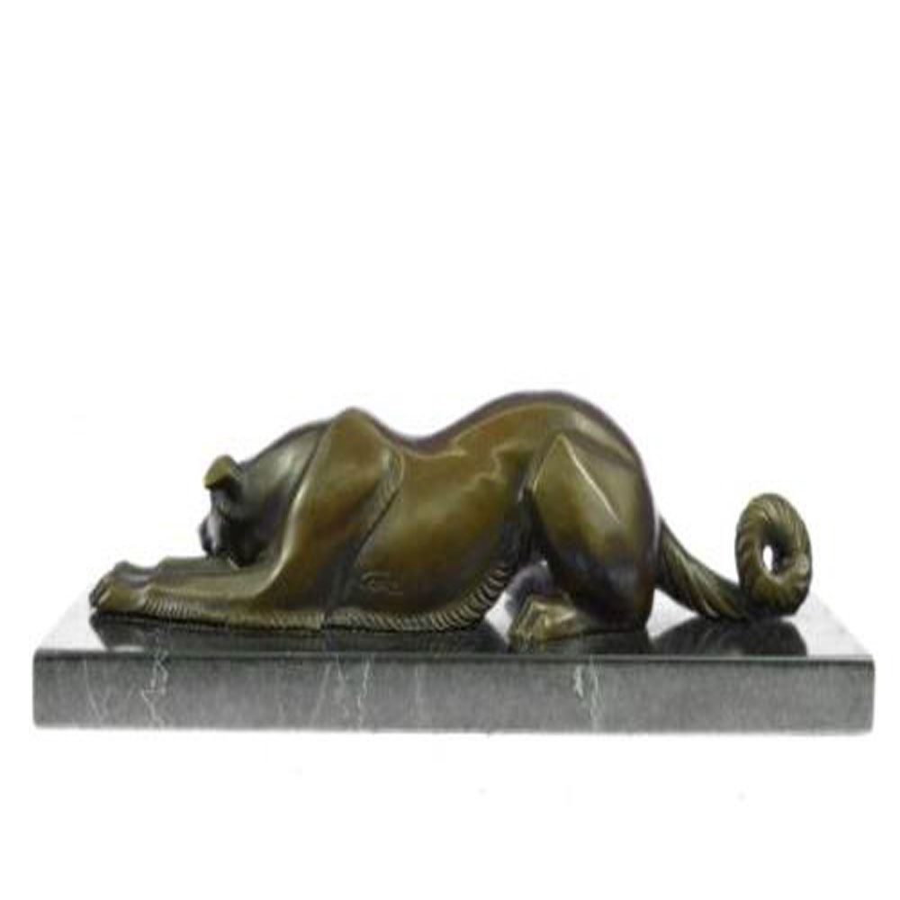 This Patient And Loving Greyhound Dog Rests On The Ground. His Long, Lean Body Stretches Out And His Head Lays On His Front Leg. His Thick Tail Curls Up. The Strong And Skillful Animal Appears Calm And Pensive In This Bronze Sculpture. The Peaceful Sculpture Of Man Best Friend Was Crafted Using The Lost Wax Method. It Rest On A Black Marble Base. Bronze Dimensions with Marble Base: Height 4 X Width 12 inches. Weight: 7 LBS.