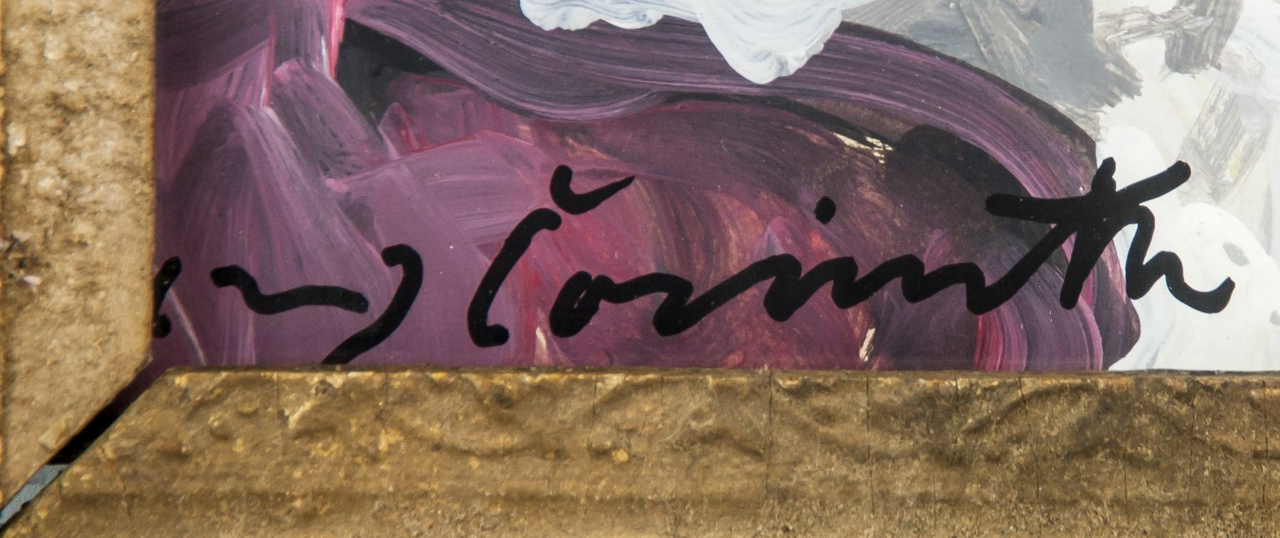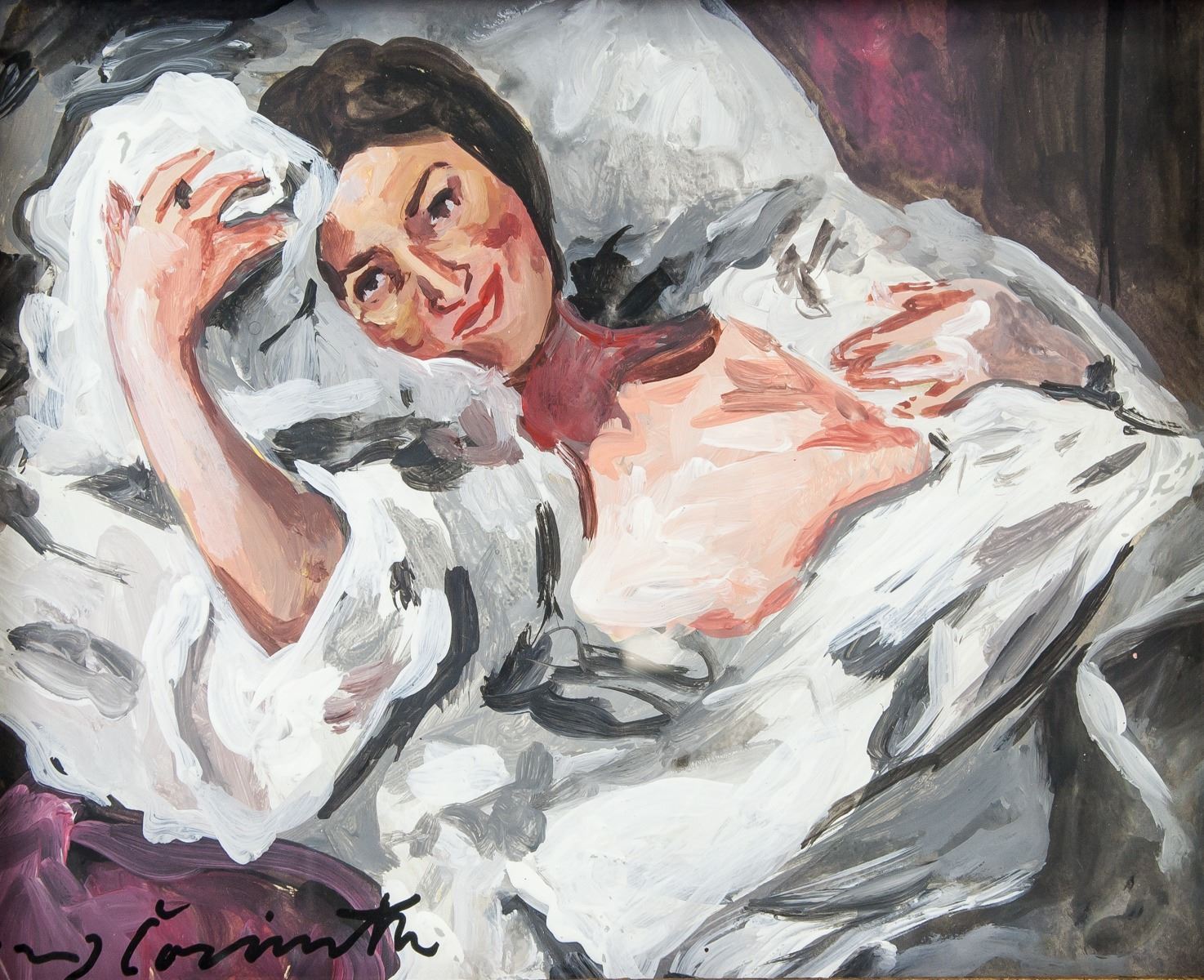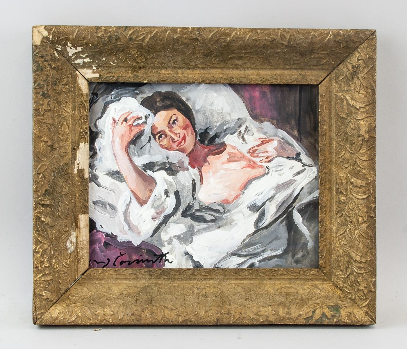 Oil on paper, framed. Featuring a portrait of a woman. Signed Corinth on the lower left corner. Attributed to Lovis Corinth (1858-1925, German). 19 x 23.5 cm (7.5 x 9.3 inches). Frame size: 30 x 34.5 cm (11.8 x 13.6 inches)