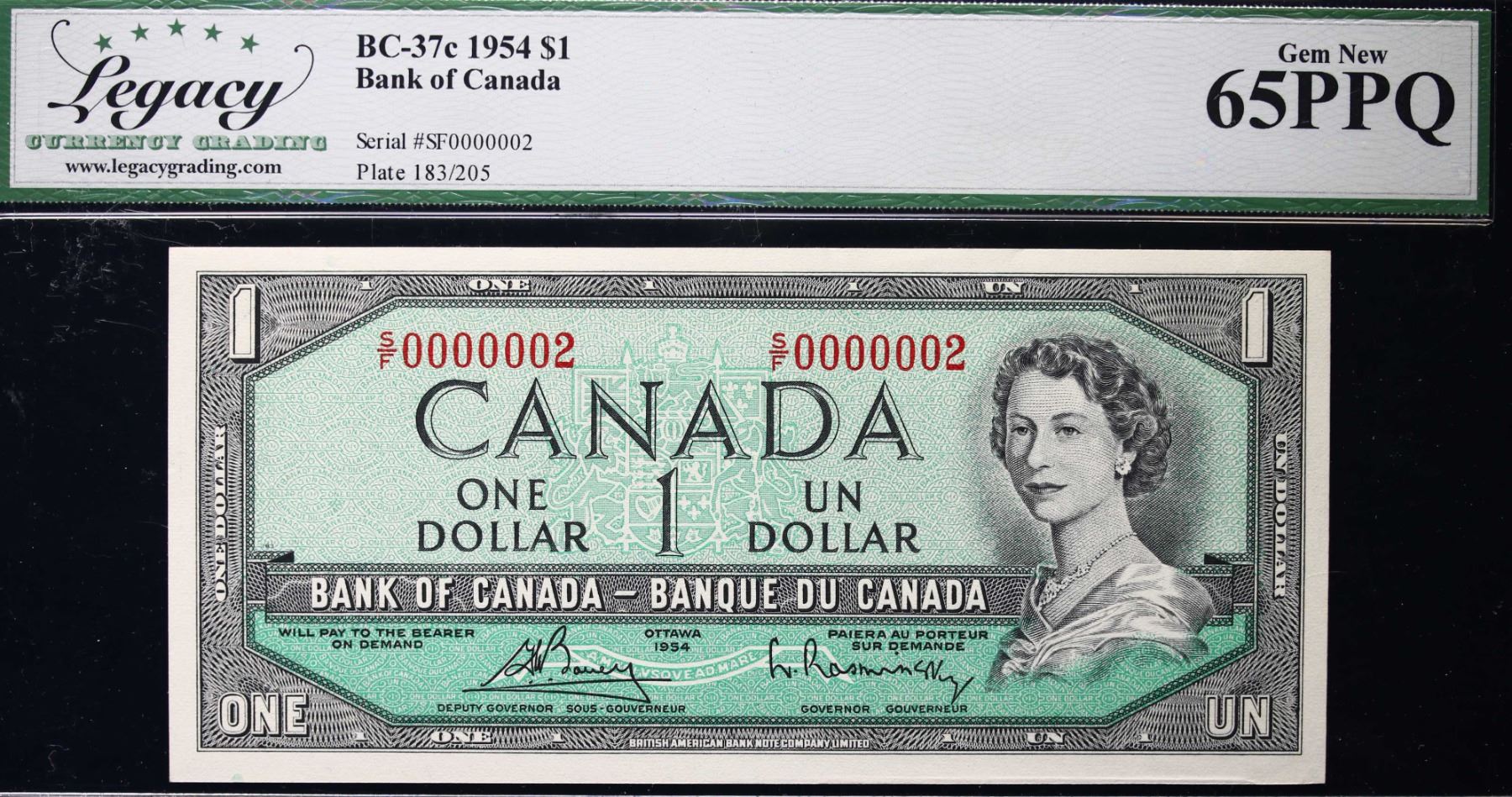 Low Number; 1954 $1 BC-37C #S/F0000002 LCG Gem Uncirculated-65PPQ