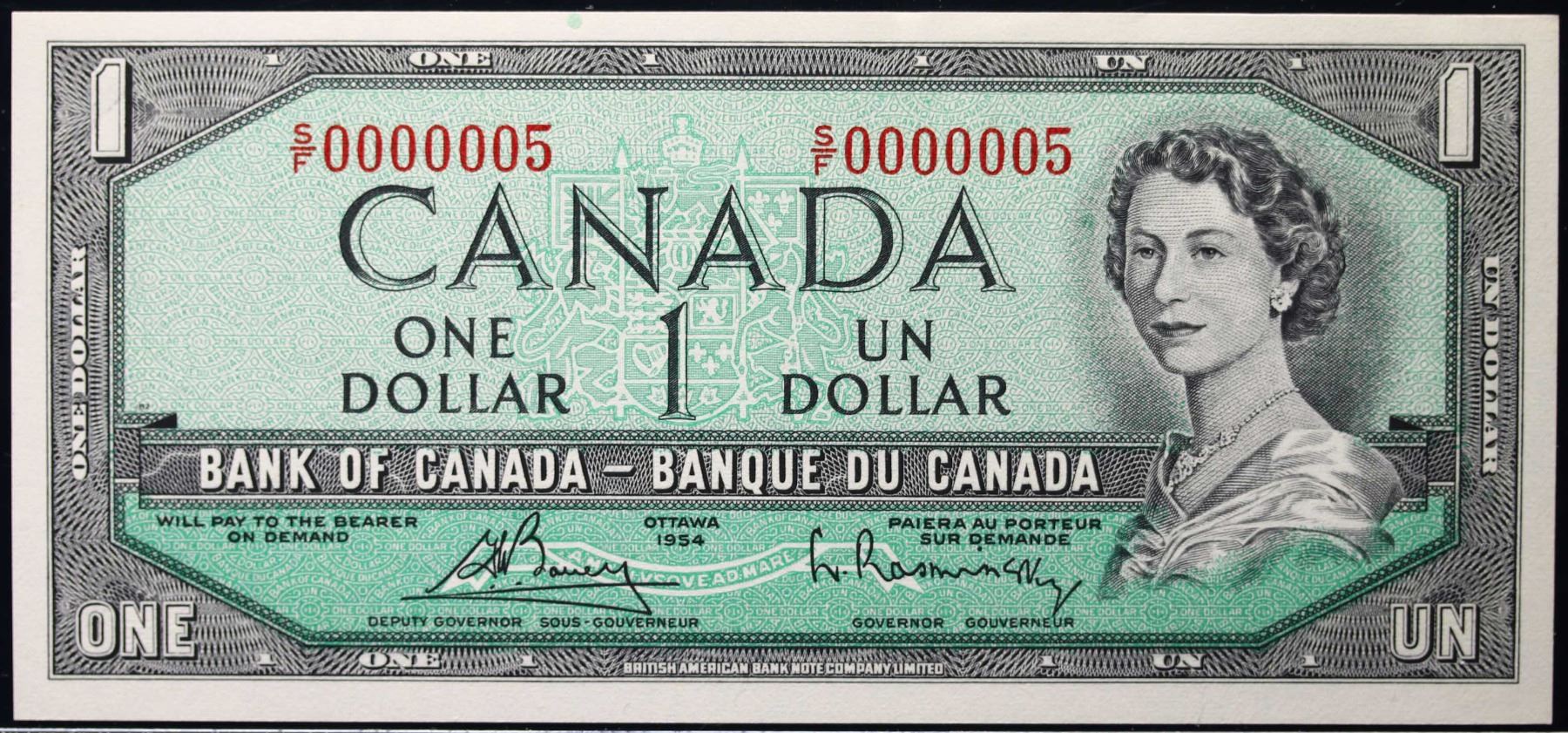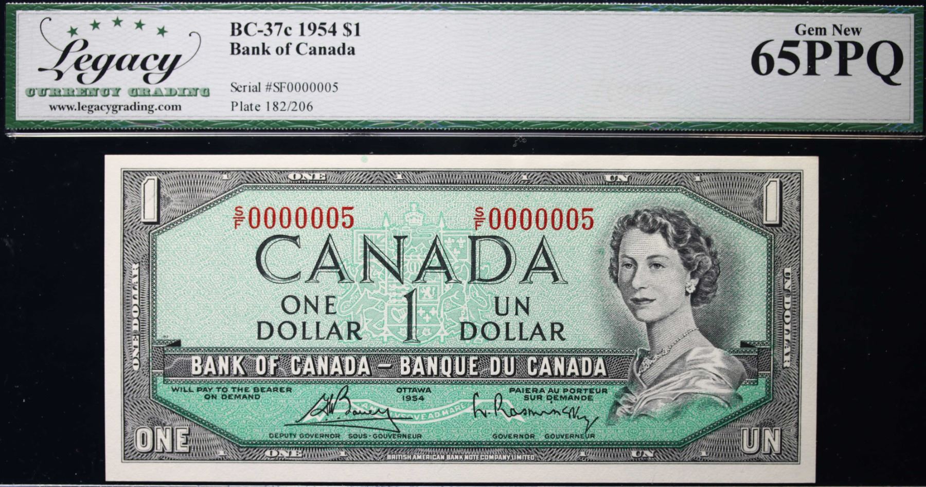 Low Number; 1954 $1 BC-37C #S/F0000005 LCG Gem Uncirculated-65PPQ