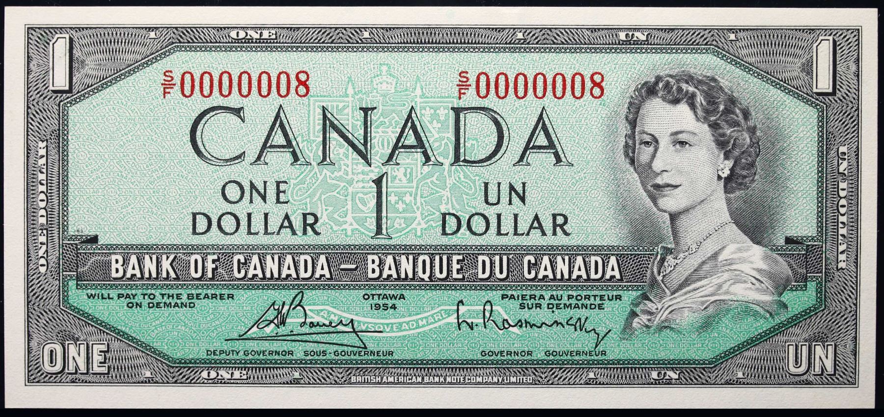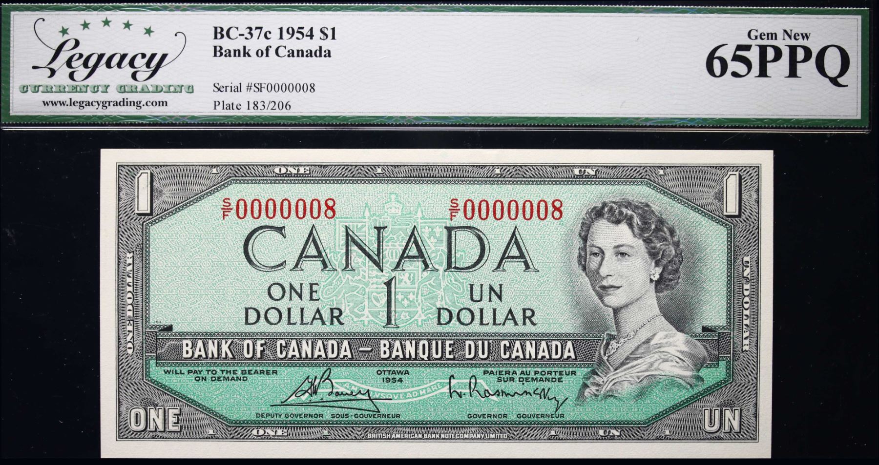 Low Number; 1954 $1 BC-37C #S/F0000008 LCG Gem Uncirculated-65PPQ