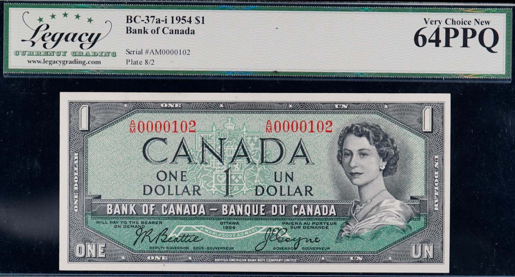 Low Number; 1954 $1 BC-37a-i #A/M0000102 LCG Choice Uncirculated-64PPQ